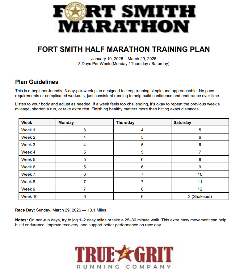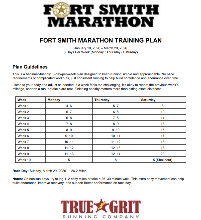 Start training with us January 19th for the Fort Smith Marathon! Join our FB group to stay updated on any changes.